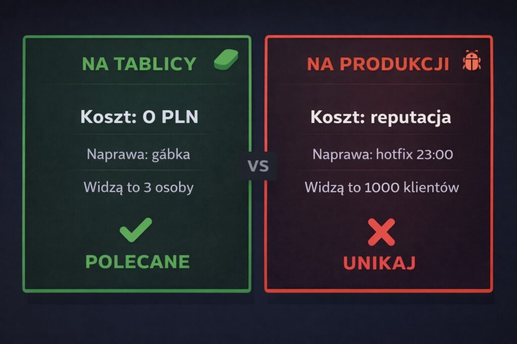 | Koszt błędu | 0 PLN | Reputacja + nadgodziny |